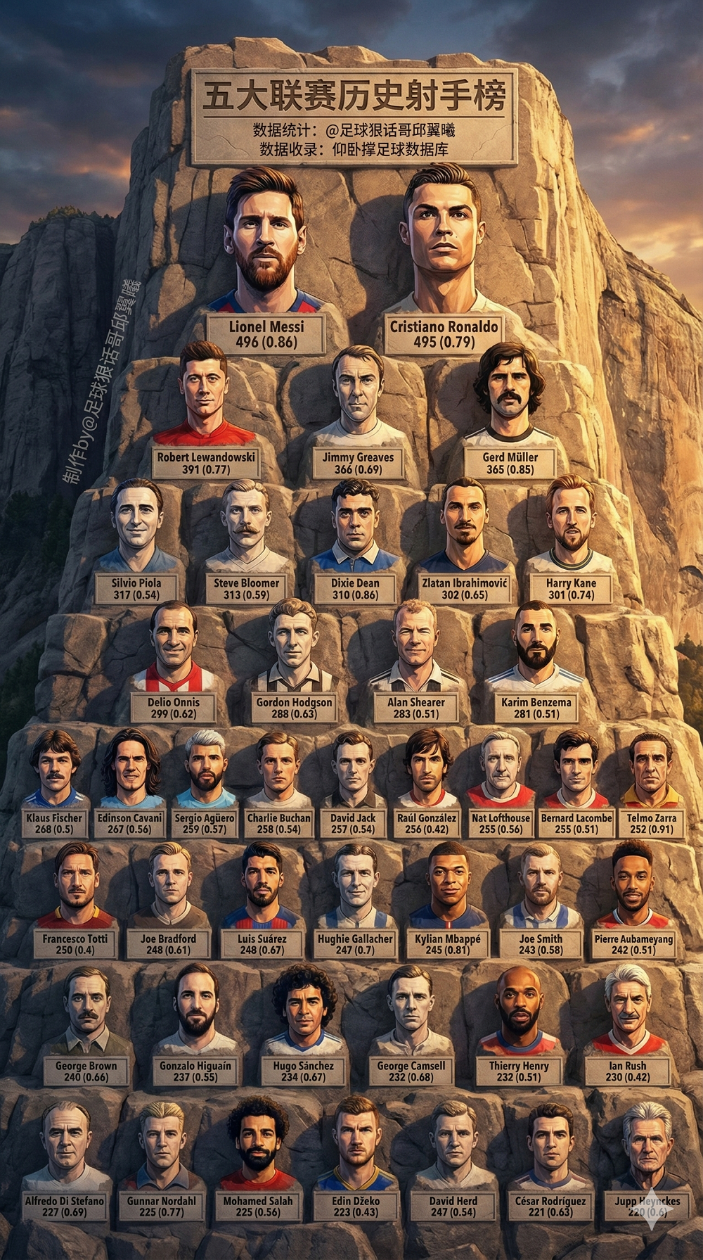 足球狠話哥獨家:五大聯(lián)賽歷史射手榜
